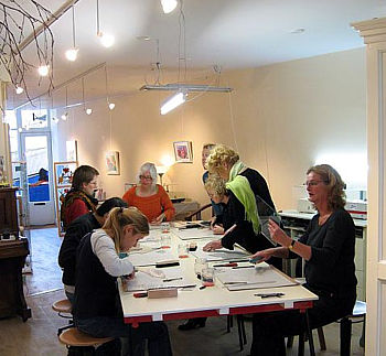 De workshop wordt gegeven in het glasatelier van Heleen van der Spek te Leiden.