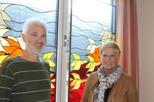 Voorburg – Bezoekers, medewerkers, vrijwilligers én bewoners van hospice Het Vliethuys bewonderen dagelijks de fraaie glas in lood ramen in de stilteruimte. De ramen zijn vervaardigd door Joost Wijnberg die met zijn bedrijf Kijkglas zich heeft gespecialiseerd in het maken en monteren van glas in lood ramen. ,,We zijn er echt bijzonder blij,’’ reageert hoofd coördinator Joke Campo op het fraaie raamkozijn. ,,Het past dan ook precies in de stilteruimte waar mensen zich terug kunnen trekken als ze daar behoefte aan hebben.’’ Joke Campo samen met Joost Wijnberg voor de glas in lood ramen Door Bart Bakker Op de website van Joost Wijnberg, www.kijkglas.nl, is op het foto-album te zien hoe de glas in loodramen werden samengesteld. Hier kan men zelf aanschouwen hoe intensief en gedetailleerd het project verliep. "Het project was echt maatwerk," aldus Joost Wijnberg Cursussen In het atelier Kijkglas in Noordwijk geeft Joost Wijnberg overigens op professionele en gedegen wijze cursus waarbij aan alle facetten van de Tiffanytechniek volop aandacht wordt besteed. Atelier Kijkglas heeft een ruime sortering Tiffanyglas en materialen op voorraad. "Tiffany Glashelder is een cursusboek waarin alle technieken duidelijk worden uitgelegd", aldus Joost Wijnberg. "Alle gereedschappen worden besproken en vooral de makkelijkste werkwijze wordt gevolgd. Het boek is uitermate geschikt als een naslagwerk voor hobbyisten die nog met vragen zitten." Informatie "Ook kan men bij ons terecht voor het laten vervaardigen van Tiffanylampen, -ramen, glas-in-loodramen en gebrandschilderd glas", besluit Joost Wijnberg, die te bereiken is via de contactgegevens: Rozenburg 7, 2201 PG Noordwijk, tel. 071-3620265. e-mail: joostwijnberg@hotmail.com. Zijn website heet www.kijkglas.nl |